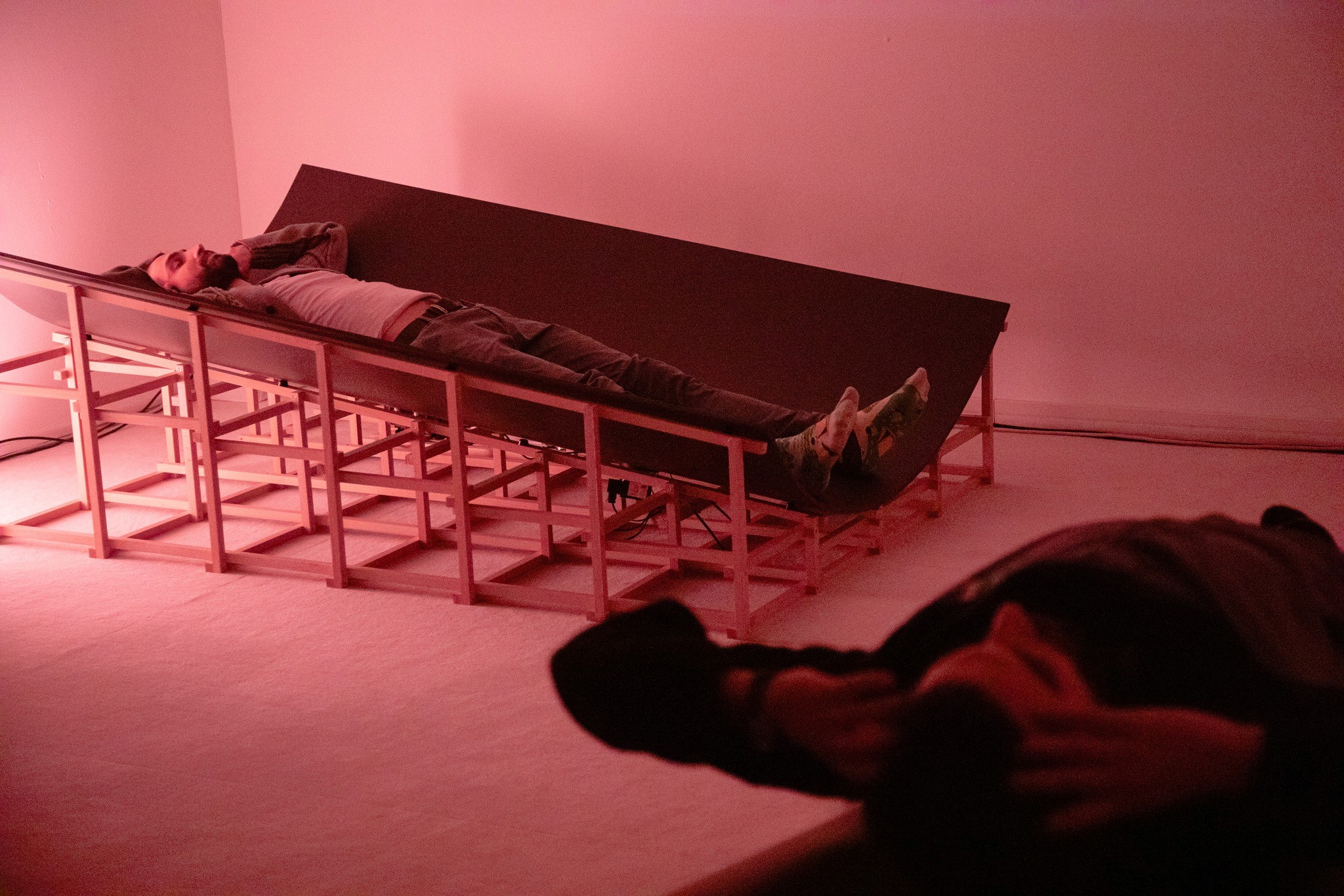 L’installazione è il risultato dell’incontro tra persone sorde e persone udenti, che insieme hanno provato ad abitare uno spazio indefinito e astratto.
