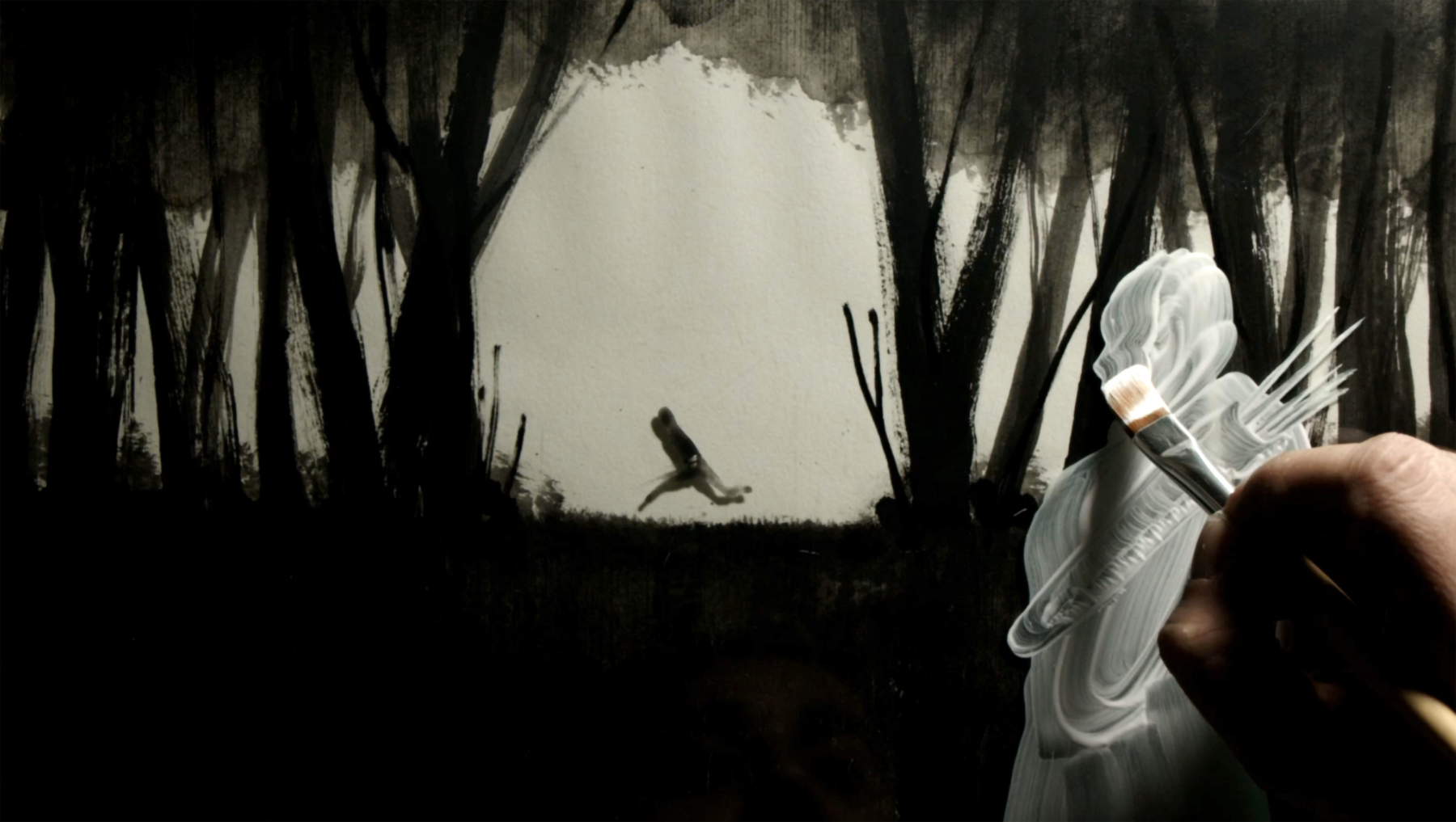 Spesso bastano le tonalità del bianco, del nero o del grigio, alternate a diversi spessori e movimenti del segno, per creare l’idea di un ambiente, di un’azione e di un mondo; così come, a volte, sono delle semplici sfumature a rendere le nuvole del cielo o sono piccoli spostamenti di una sagoma che ci catapultano e ci inglobano in un cartoon teatrale.