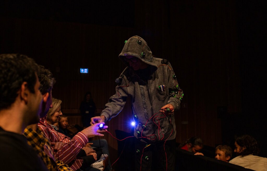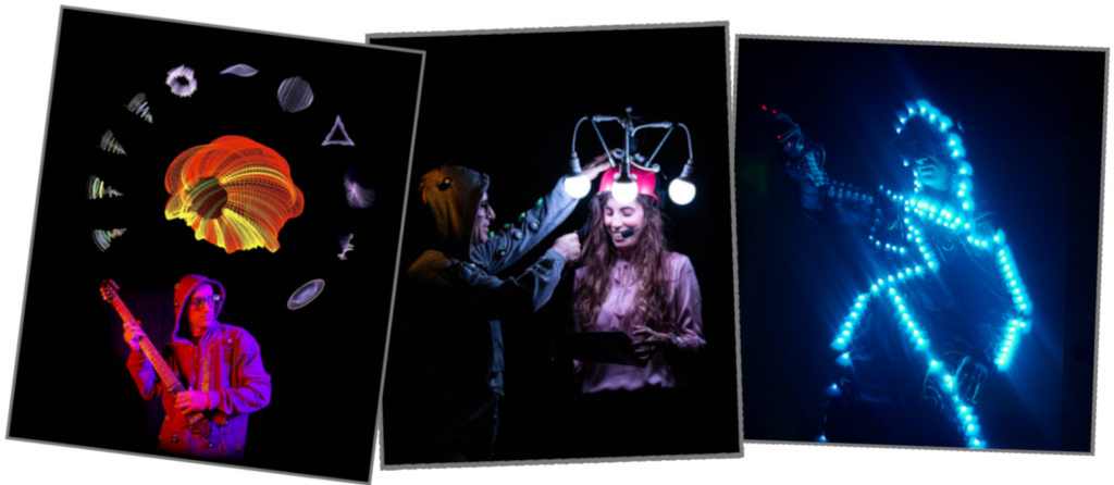 Un personaggio teneramente disastroso lotta con la scena, con se stesso e con marchingegni ribelli… fino a domarli tutti. Tra giochi circensi, loop musicali e luci in movimento, crea dal vivo uno spettacolo mozzafiato dove ogni errore diventa meraviglia.