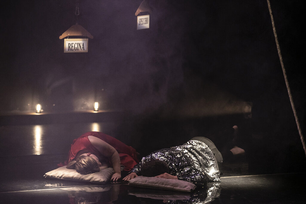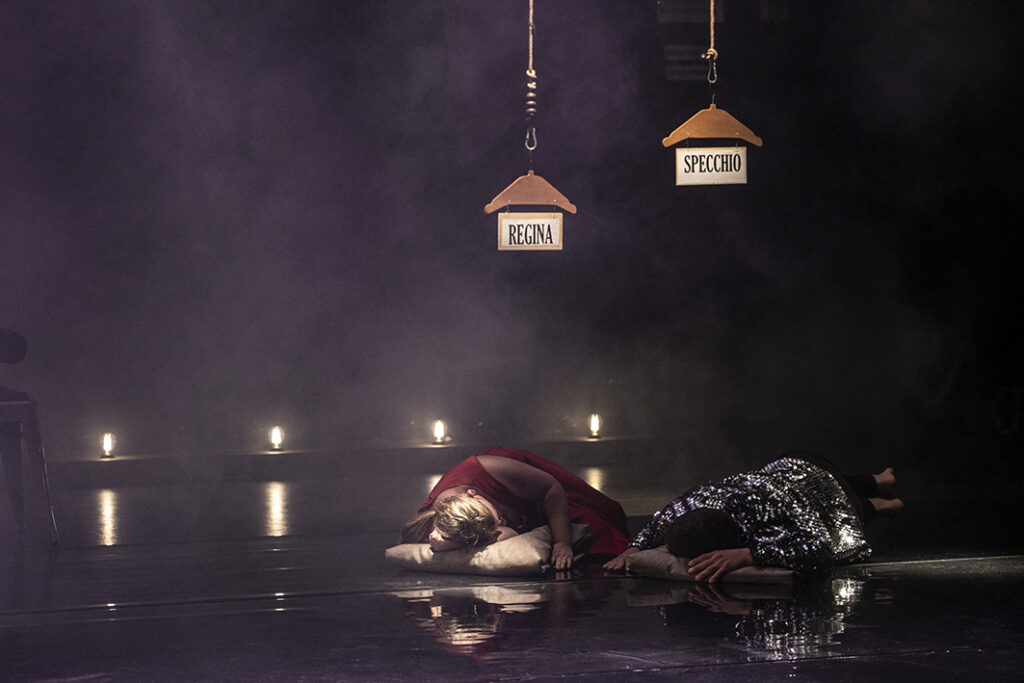 La celebre fiaba di Biancaneve viene smontata e rimontata attraverso due protagonisti inediti. Una Regina affaticata dal dover essere sempre la più bella del reame e il suo Specchio che, stanco di ripetere ciò che fanno gli altri, cerca una via di fuga.
