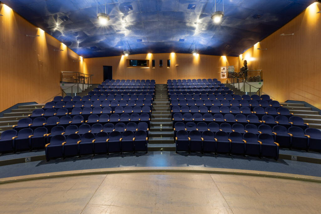 Si tratta di una sala di piccole dimensioni ma, dotata di tutte le strumentazioni, è stata costruita per recuperare al meglio la vocazione maturata nell’esperienza della vecchia sala per rilanciarla in una realtà tecnologica completamente diversa e nel mutato contesto sociale del paese.